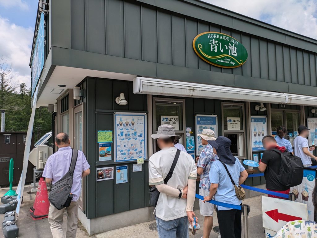 遊歩道を何度か往復して景観を堪能し終えると、アイスクリームを求めて「青い池売店」へ。