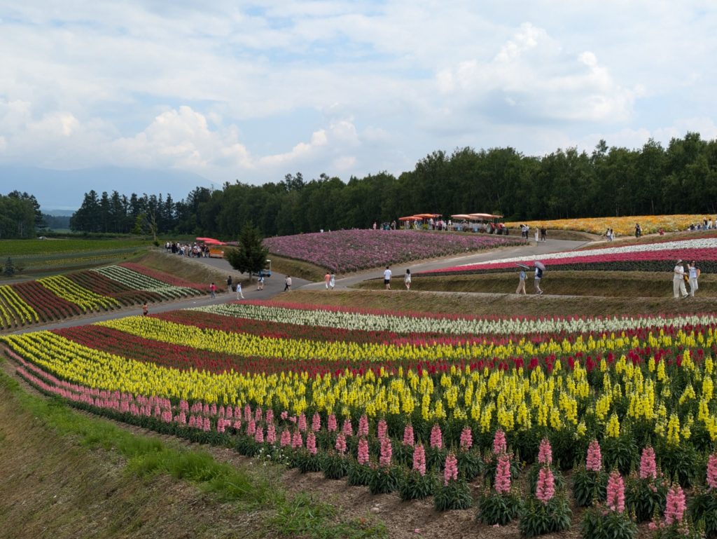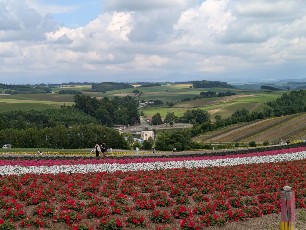美馬牛からは5分ほどで四季彩の丘に到着。着くと、入口から多くの人であふれかえっています。