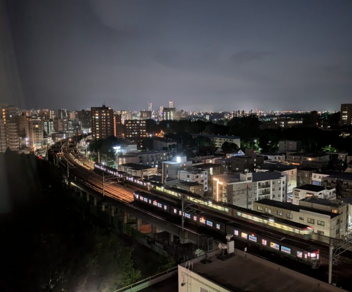 窓から見る夜景と行き交う列車を見納めて床に就きました。